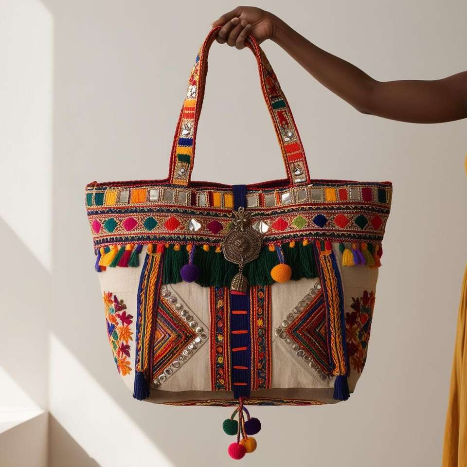 Fourre-tout Boho-Chic fait à la main avec des impressions uniques pour les vacances d'été vêtements indiens et pakistanais
