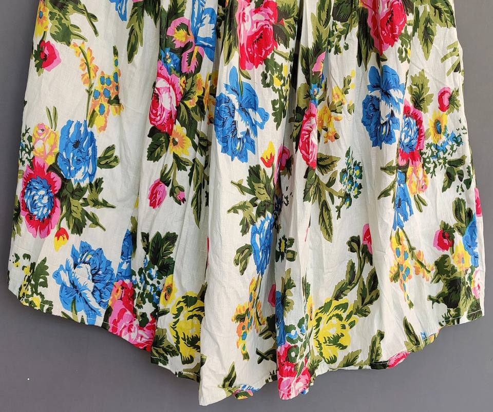 Jupe en coton blanc pour femmes à imprimé floral Boho fait à la main confortable et respirante avec taille naturelle