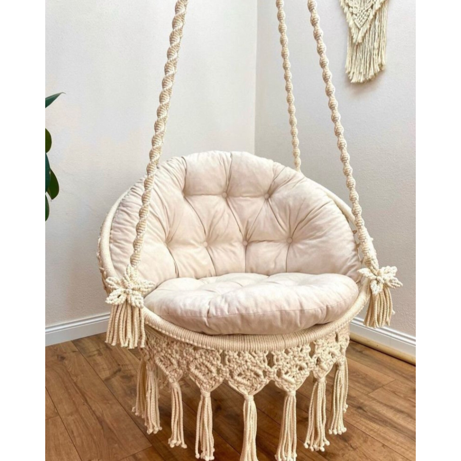 Fauteuil suspendu en macramé bohème fait main, intérieur et extérieur, en corde de coton