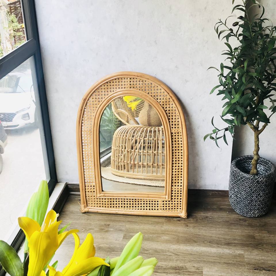 Fait à la main Boho Rotin Canne Miroir Art Déco Décoration Murale Osier Art Arche Unique Élément Décoratif Bao Minh Linda 4532 Anniversaire