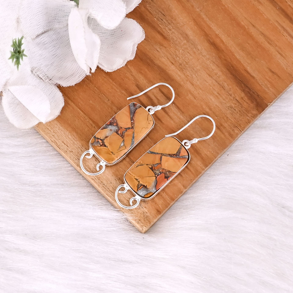 Boucles d'oreilles pendantes rectangulaires en laiton style bohème faites à la main avec pierre gemme jaspe Malinga, plaquées argent, fabricant en gros
