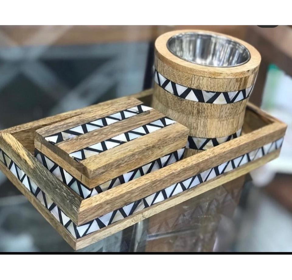 Brûleur à Bakhoor en os incrusté fait main avec plateau assorti, porte-encens de luxe