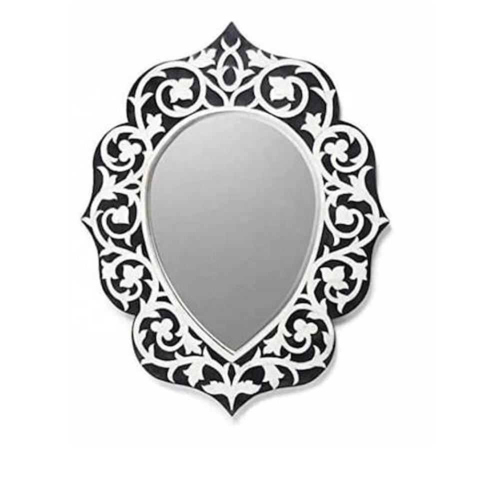 Incrustation d'os faite à la main motif floral noir cadre de miroir décoratif festonné salle de bain mur maison cadre d'os décoratif meubles