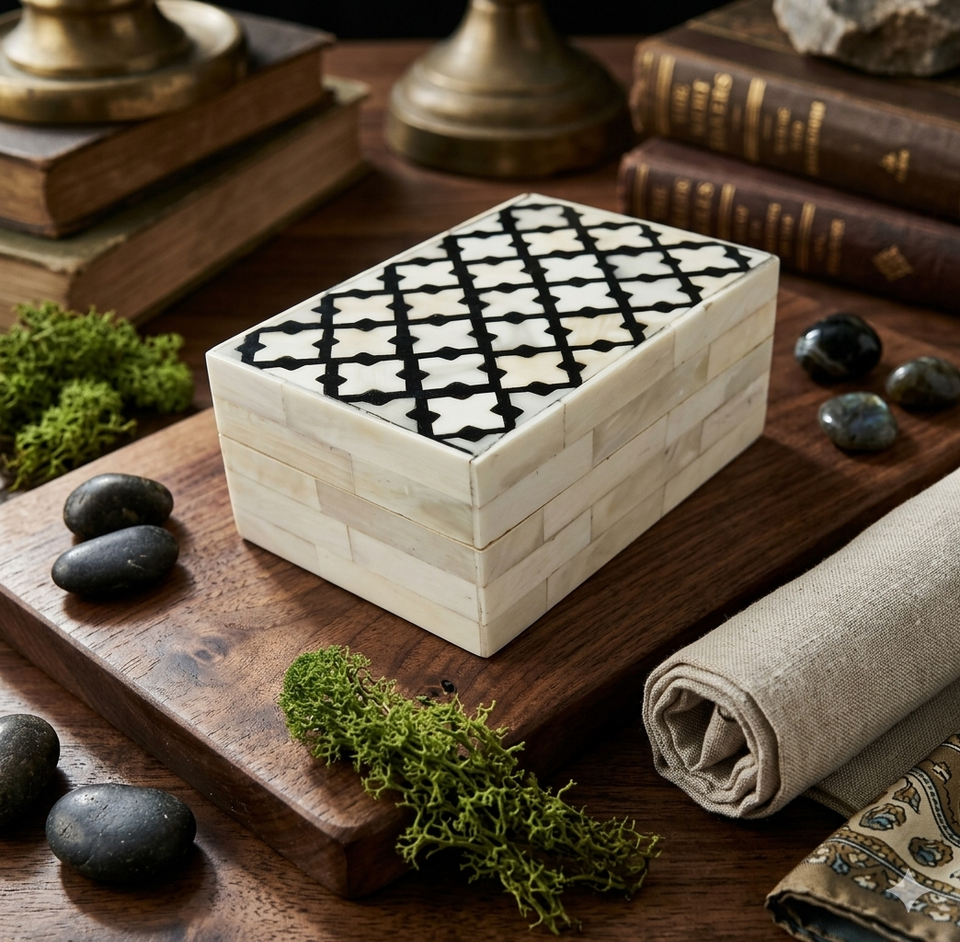 Boîte à bijoux en incrustation d'os vintage faite à la main Keep Shake Functionality Craft Box avec incrustation d'os accentuée