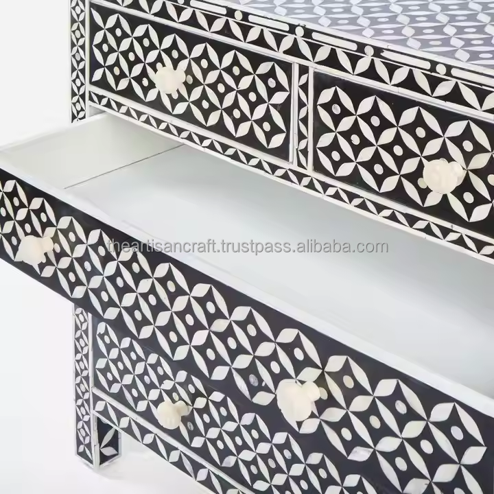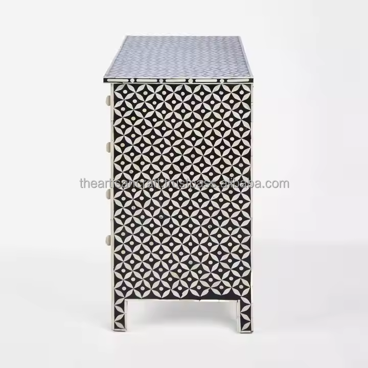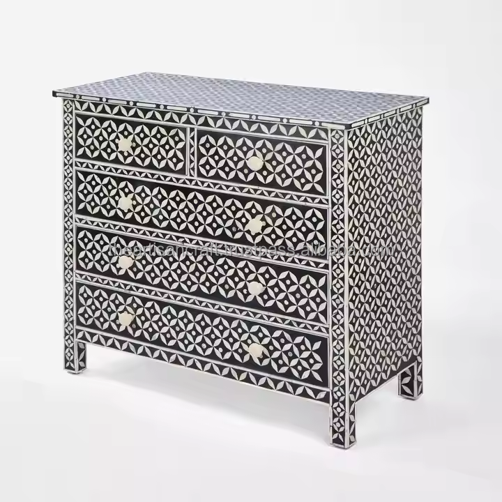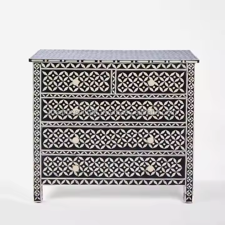 Commode en os incrusté à 5 tiroirs, meuble de rangement artisanal, nouveau design, mobilier de maison tendance pour chambre et salon CRAFT