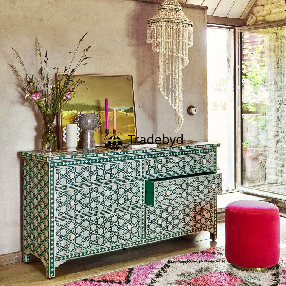 Tradebyd Commode élégante avec incrustation d'os et motifs floraux intemporels Meubles de rangement traditionnels par Tradebyd
