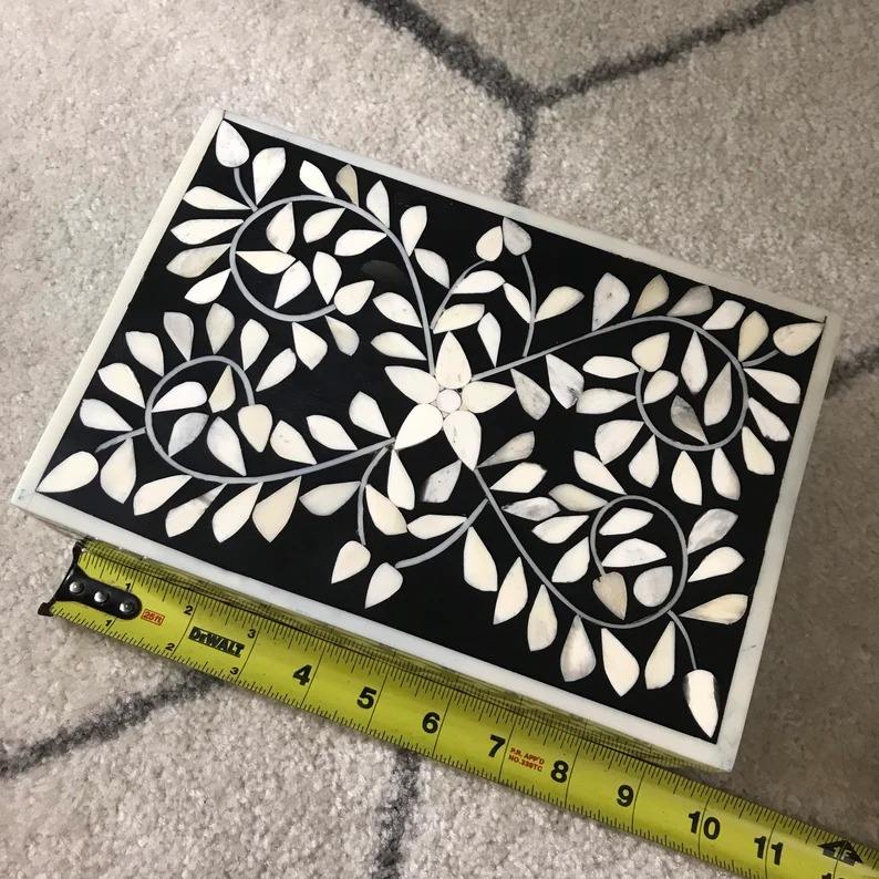 Boîte d'organisation de bijoux en incrustation d'os faite à la main avec plusieurs compartiments et finition polie pour bagues, colliers,