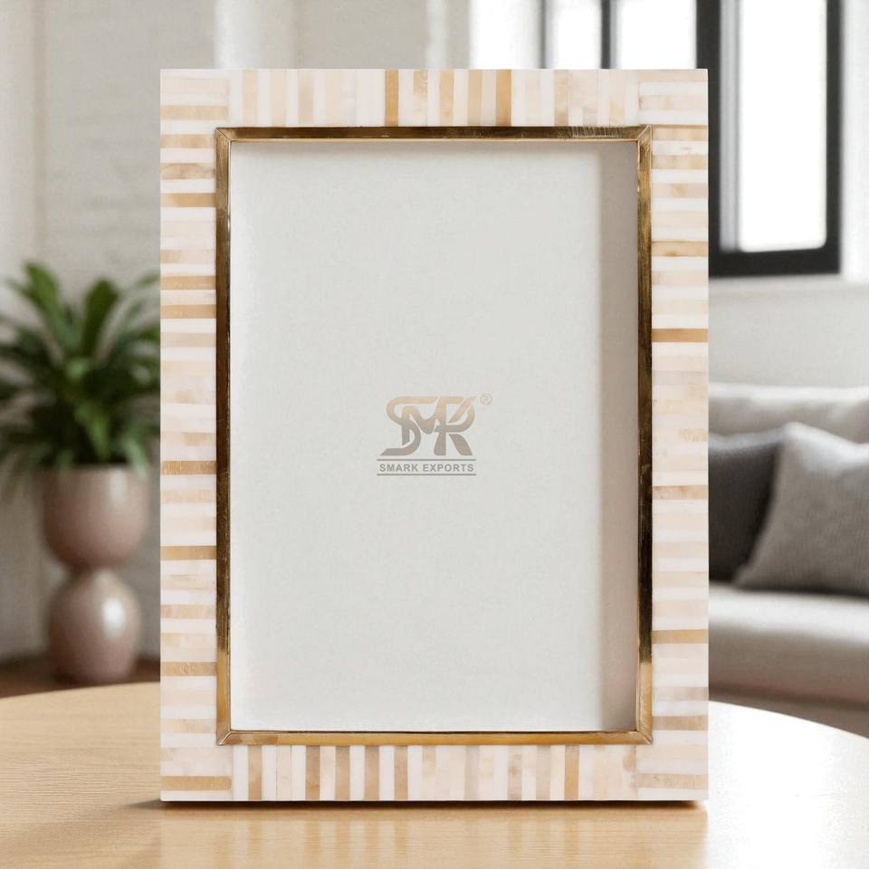 Cadre photo rustique en incrustation d'os fait à la main pour motif de clés Halo blanches, cadre mural/de table personnalisable de qualité supérieure
