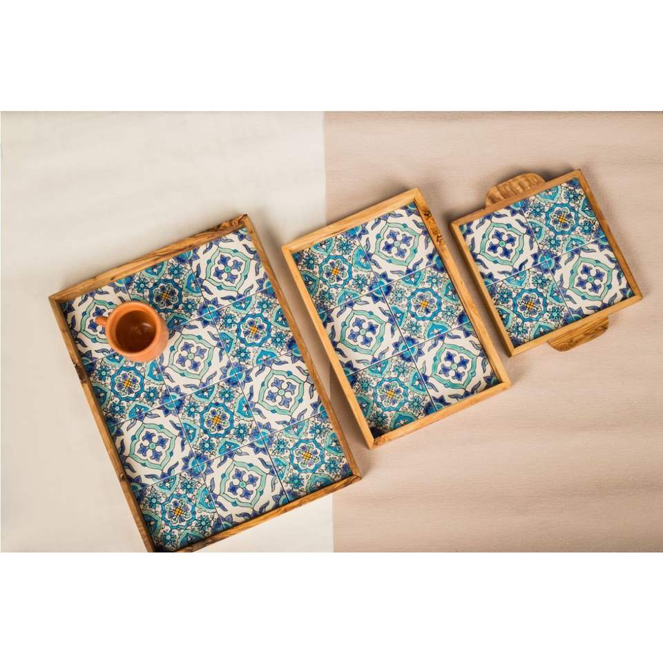 Ensemble de plateaux de service en os incrusté faits à la main, motif floral de luxe, plateaux décoratifs en bois, plateau rectangulaire incrusté de nacre pour table basse à domicile