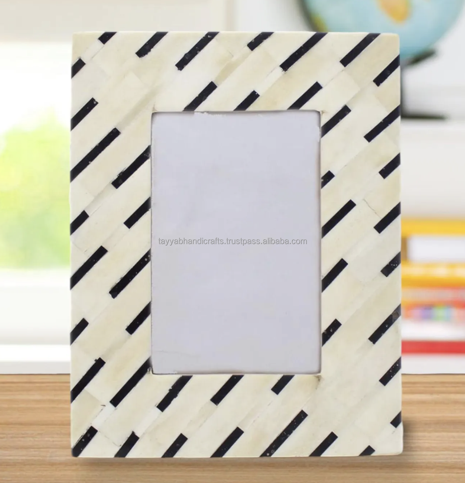 Cadre photo en mosaïque fait à la main en os et résine incrustée pour décor de table d'indien