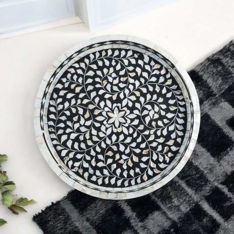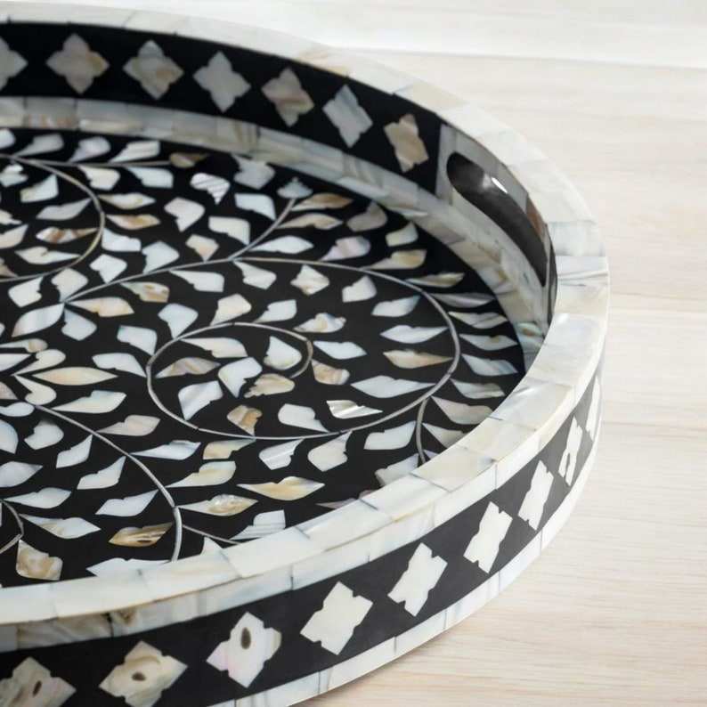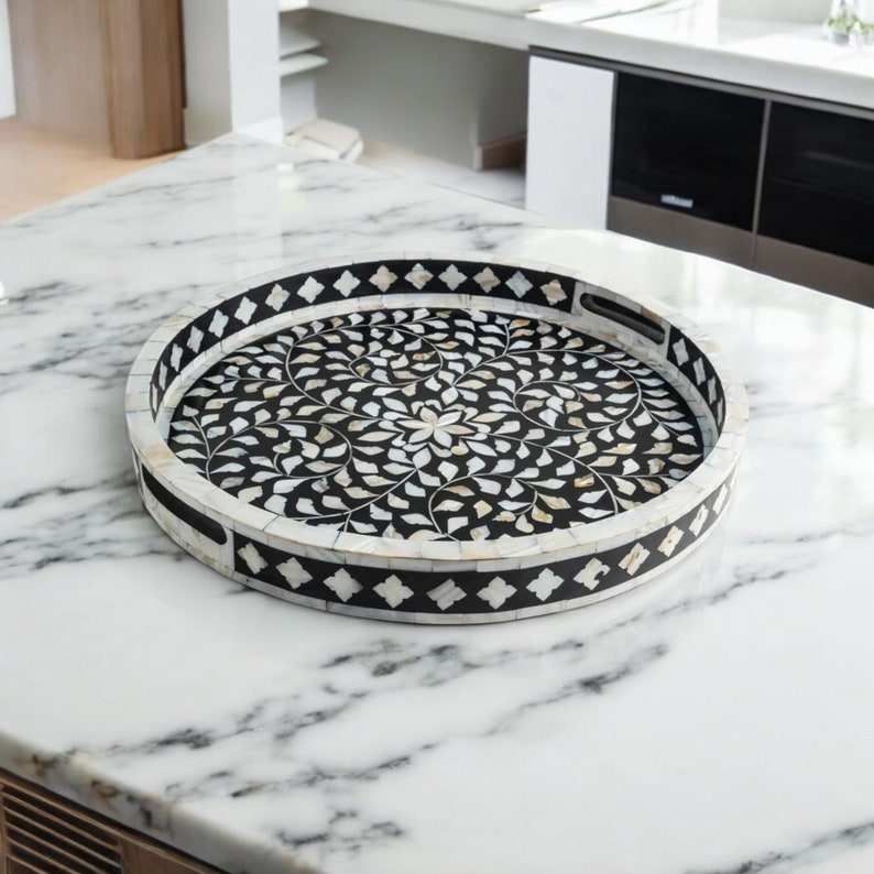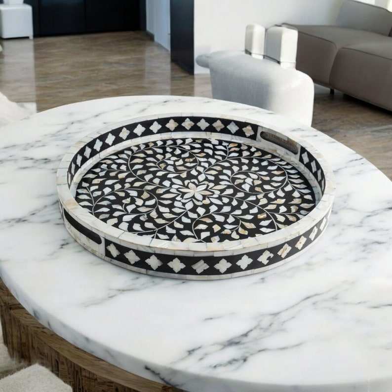 Plateau décoratif élégant en os et résine fait à la main pour servir des boissons, des collations et des cadeaux