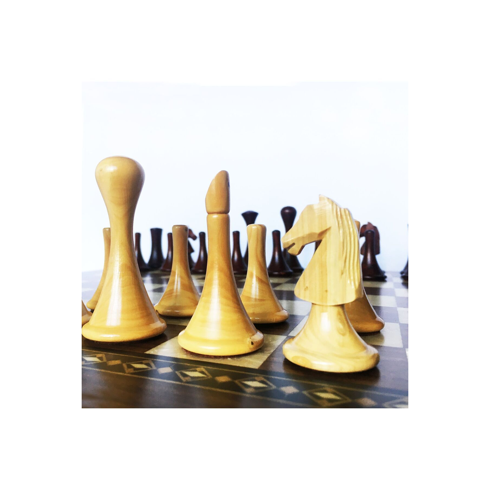 Pièces d'échecs modernes abstraites en bois de buis faites à la main 77mm (3 ")