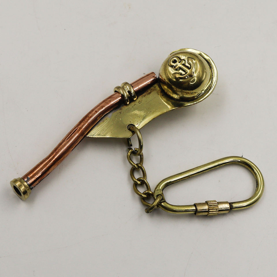 Porte-clés carré en laiton fait à la main boussole Bosun sifflet 10cm avec impression offset UV cadeaux souvenirs fonctionnels durables de haute qualité