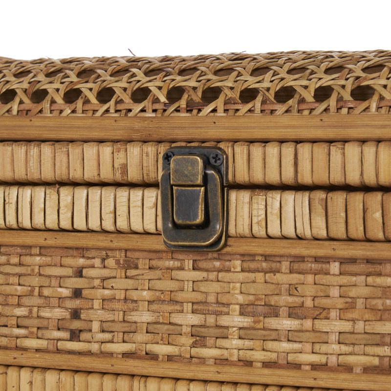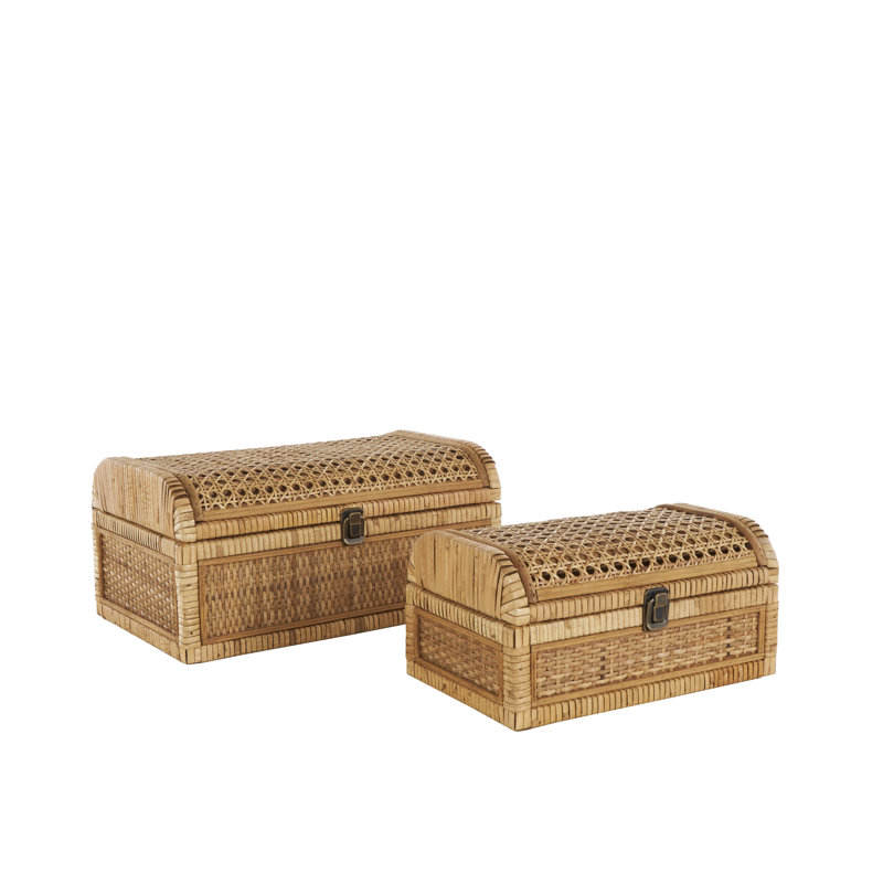 Boîte de rangement décorative en rotin marron faite à la main avec dessus incurvé et bords enveloppés Ensemble de boîtes tissées