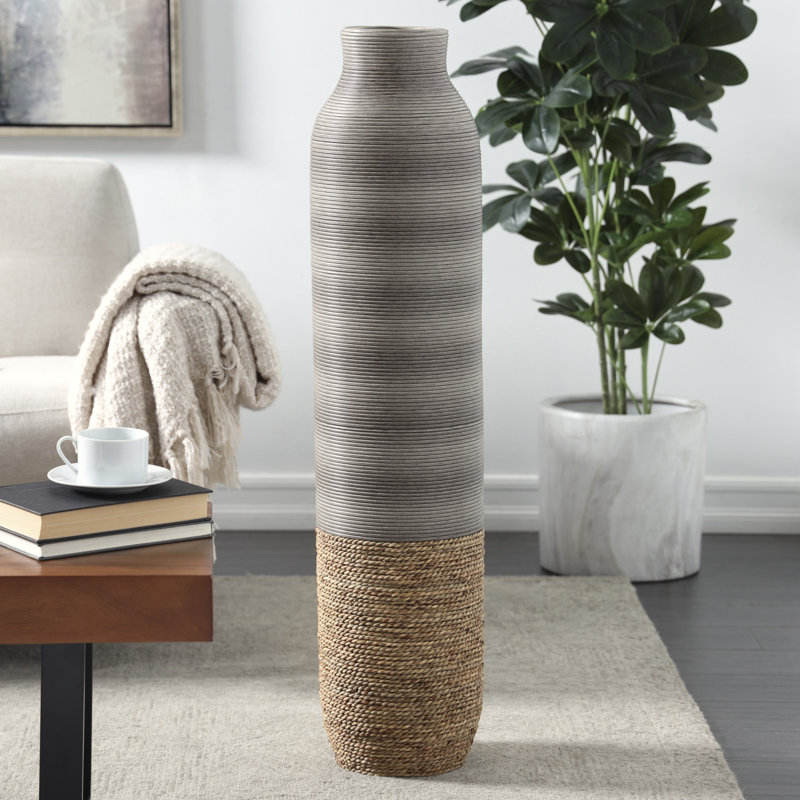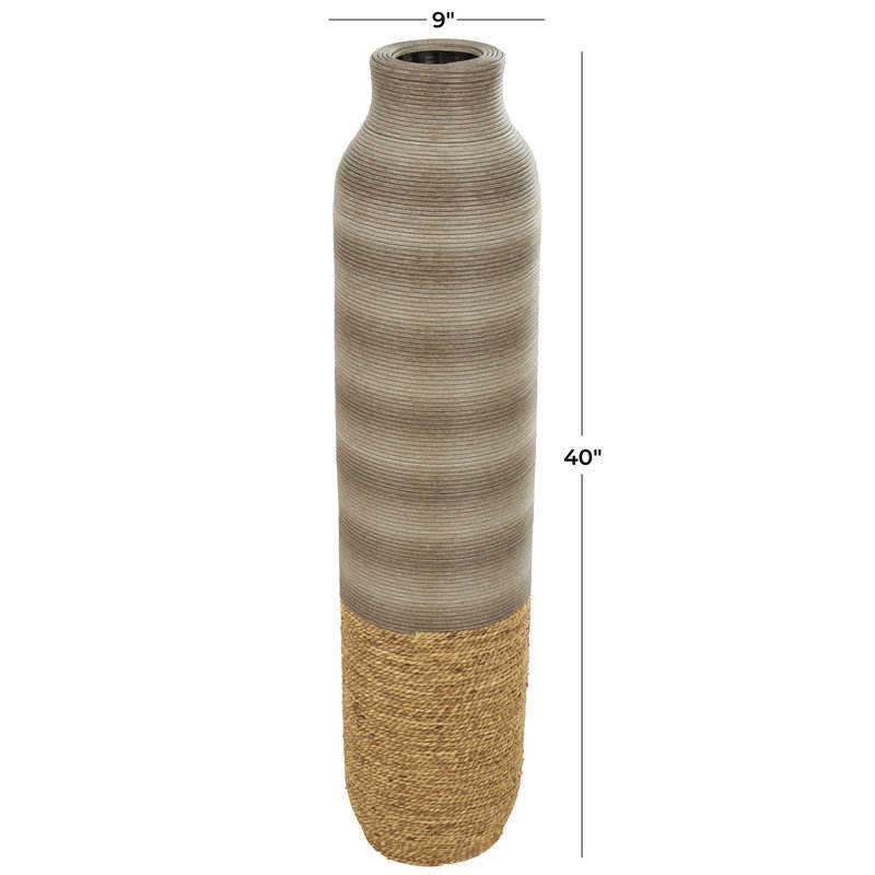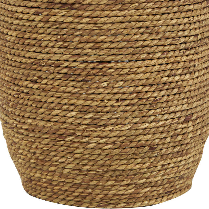 Handmade Brown Seagrass Decorative Vase with Coiled Base and Woven Floral Accent