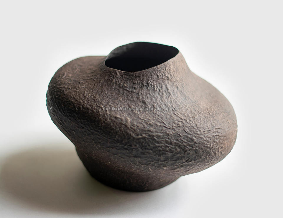 Vase en papier mâché texturé marron fait à la main en forme organique écologique