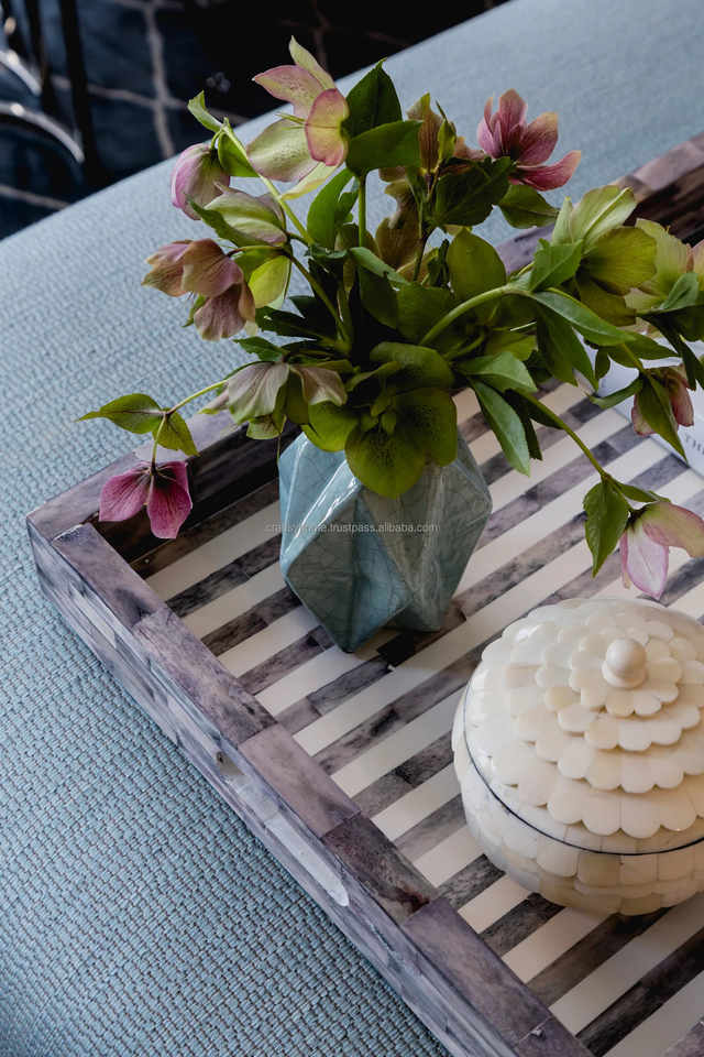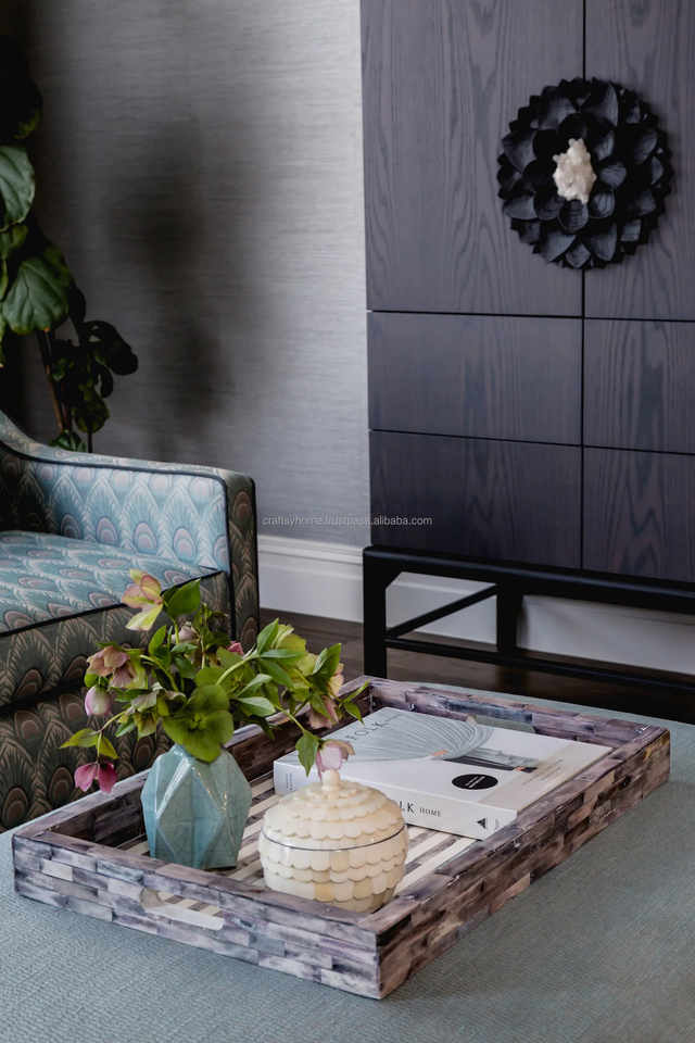 Plateau courbé artisanal marron et blanc avec incrustation d'os, taille personnalisable, en résine, pour service de cuisine et d'invités, modèle style ange, objet de souvenir