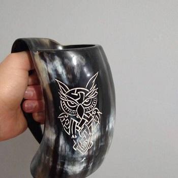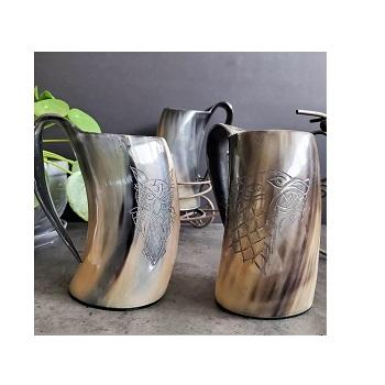 Handmade Buffalo Ox Horn Beer Drinking Mug with Custom Logo Option Style Buffalo Horn Beer Mug for Gifting and Home Bar Decor