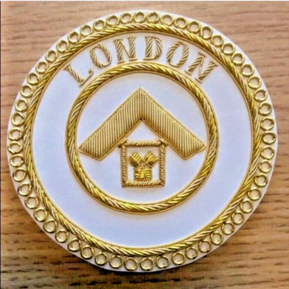 Badge de tablier maçonnique de luxe fait main, brodé au fil de bullion, style London Grand Rank, pour tenue de cérémonie, avec effet 3D en relief