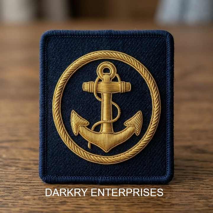 Écusson ancre nautique fait main en fil de bullion, bleu marine, en feutre de laine, pour blazers, casquettes, uniformes, vente en gros, broderie personnalisée