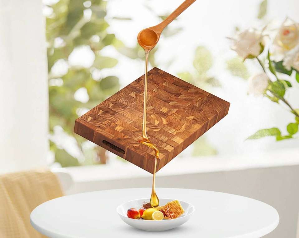 Planche à découper en bois artisanale, forme rectangulaire, facile à nettoyer