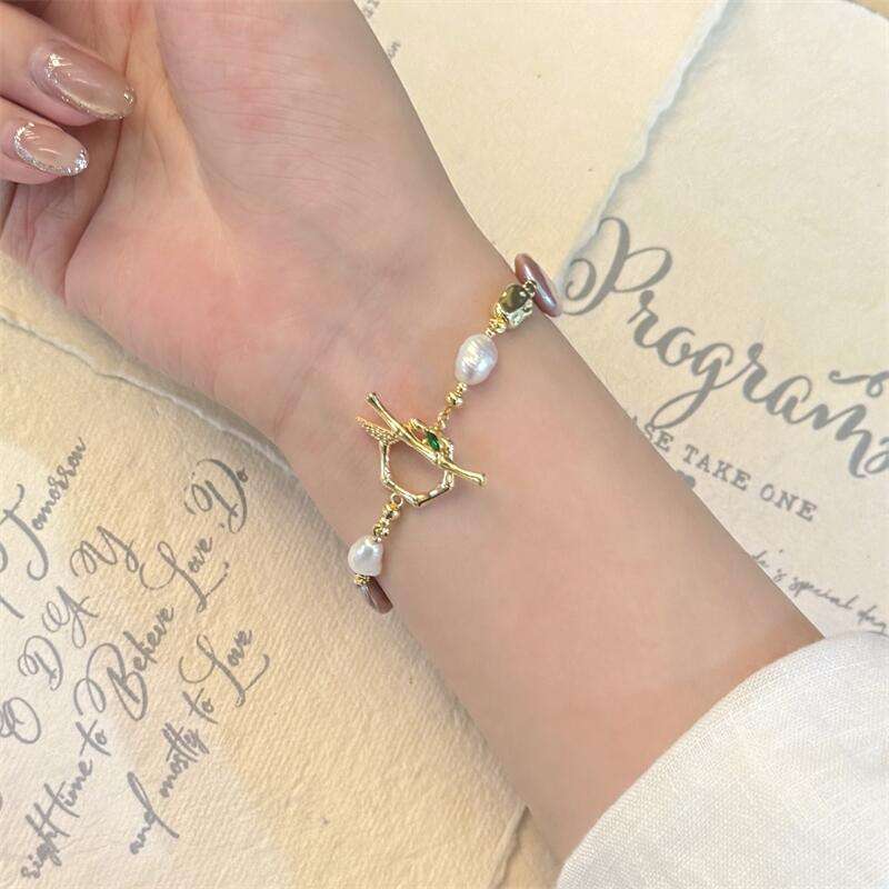 Bracelet en perles d'eau douce de forme baroque avec bouton artisanal, design de bouton OT, luxe léger, colliers de mode perlés, perle irrégulière