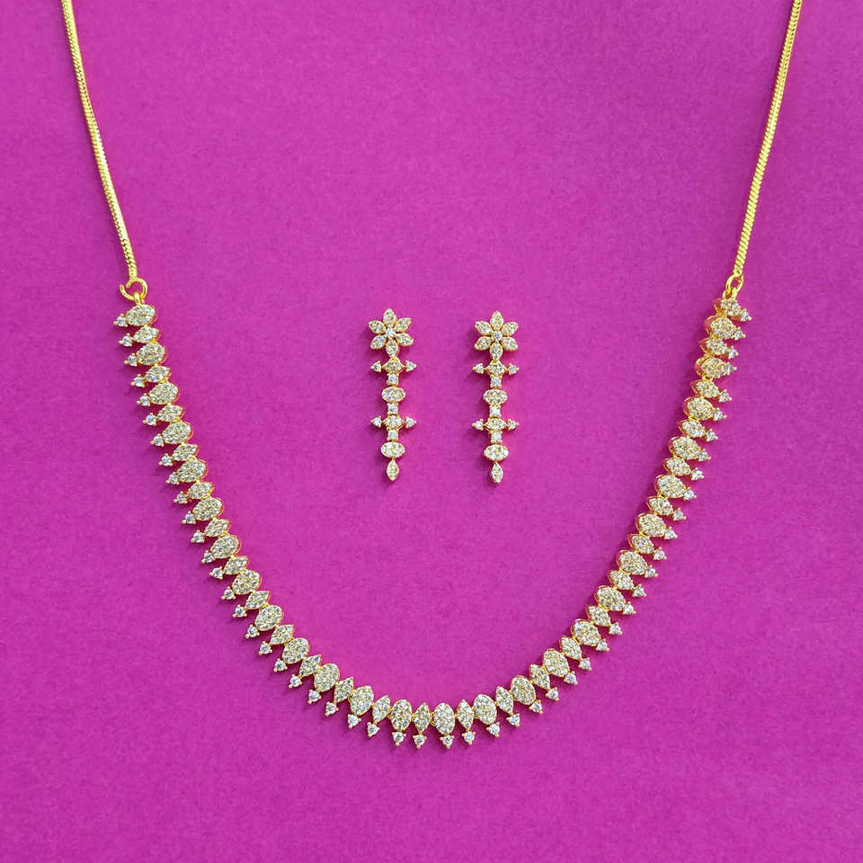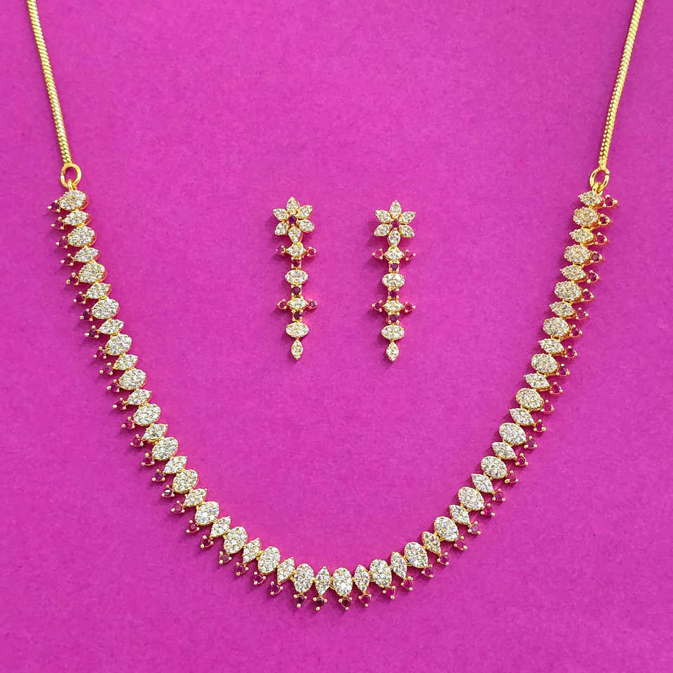 Ensemble de colliers délicats CZ faits à la main plaqué or bijoux fins d'Inde en laiton et alliage de zinc chaîne de lame émeraude de style mignon