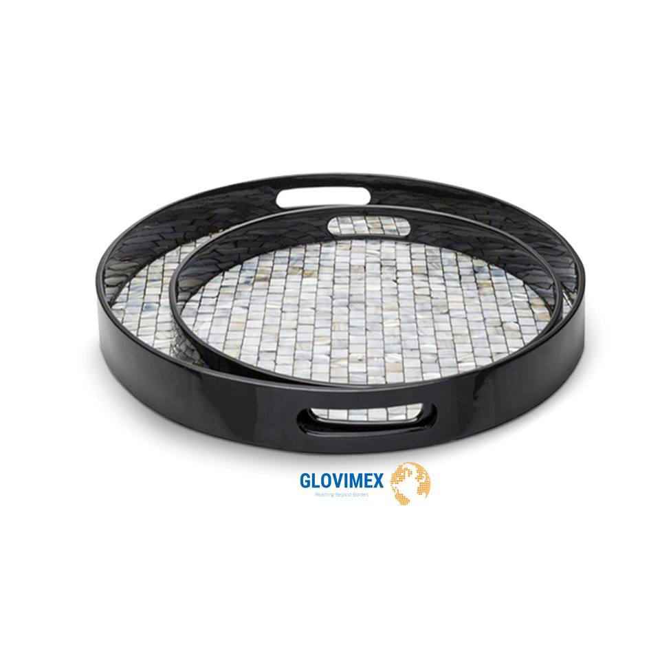 Plateau de service en coquille Capiz fait à la main décor de maison élégant pour l'organisation de la maison artisanat en osier