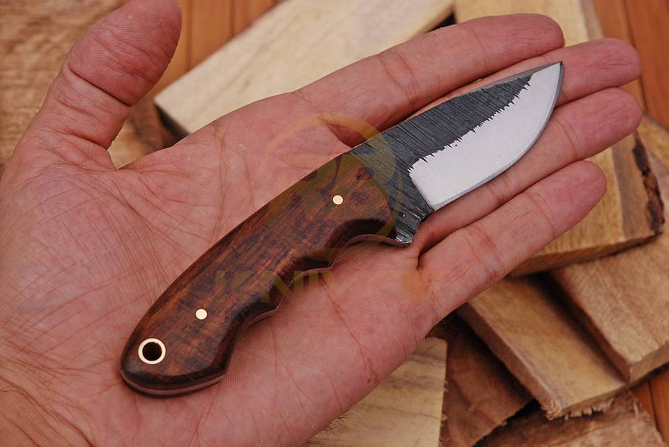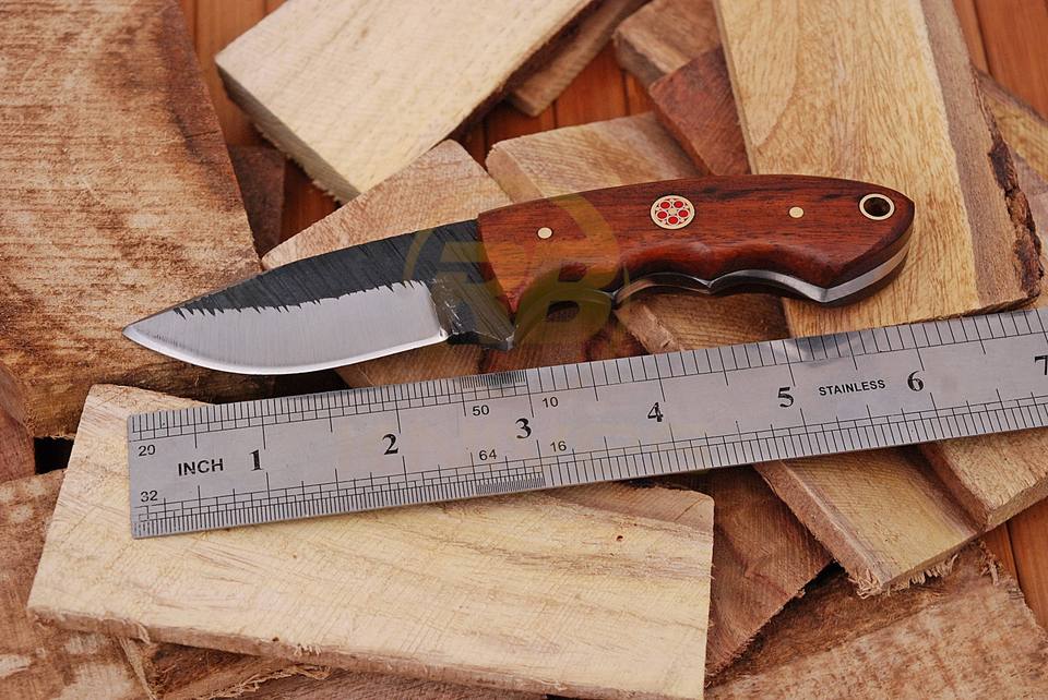 Couteau de chasse artisanal en acier au carbone, manche en bois de rose, lame pleine longueur, pour camping et survie en extérieur, avec étui