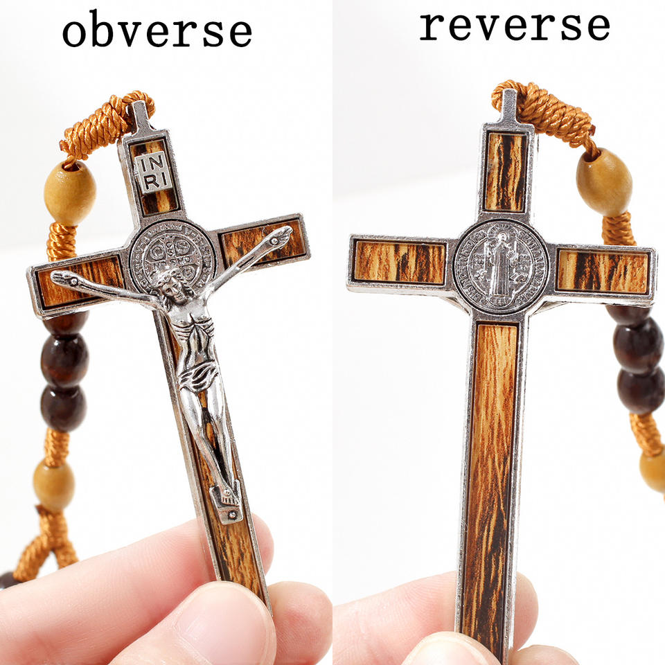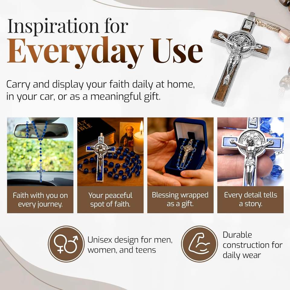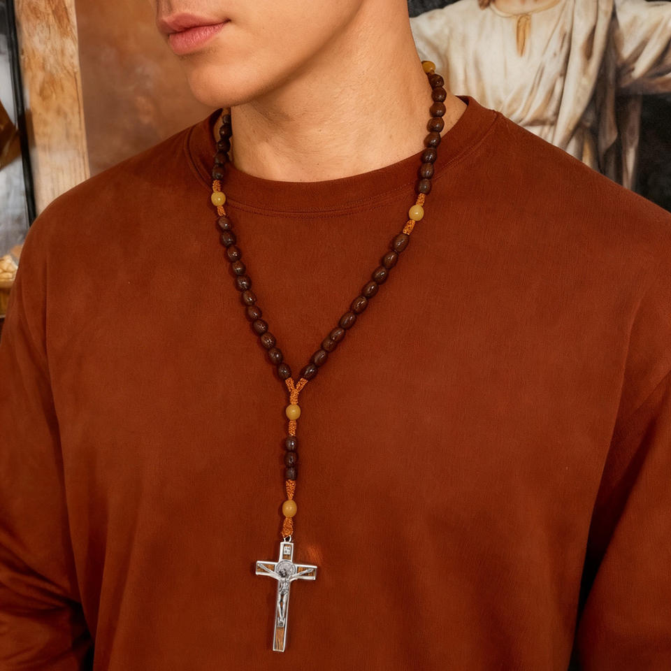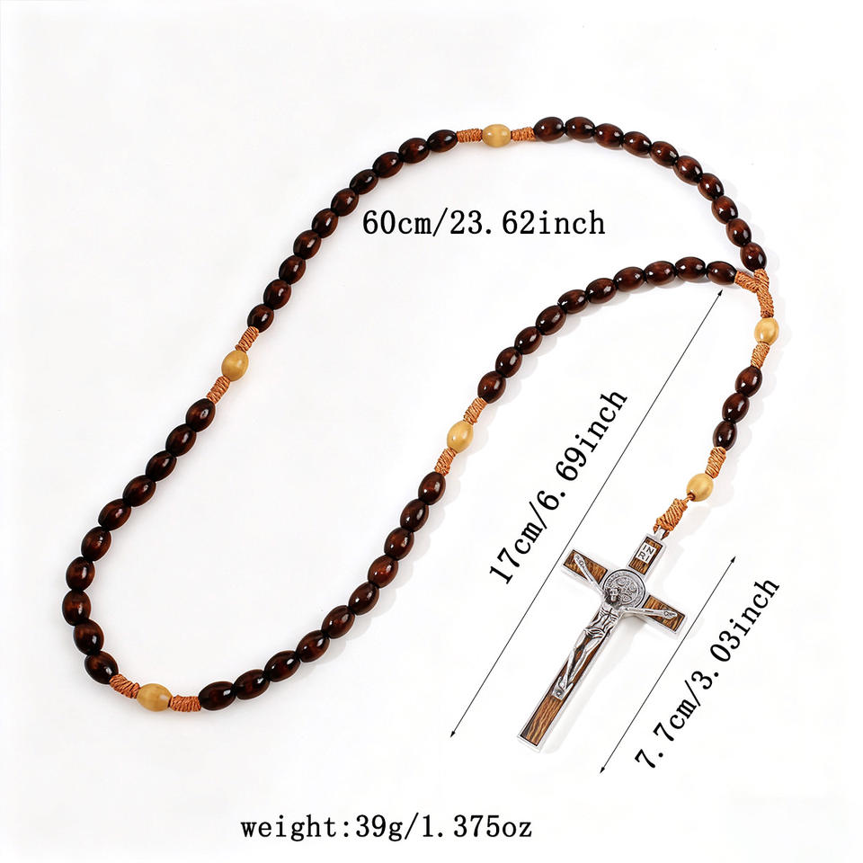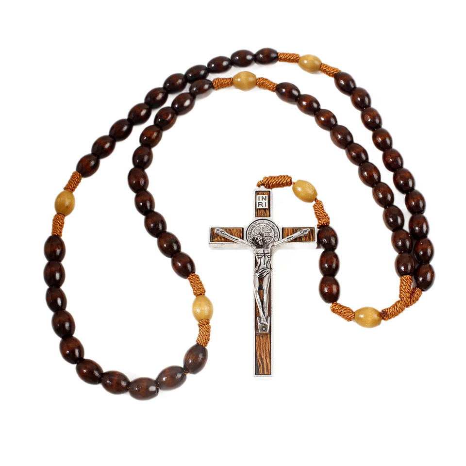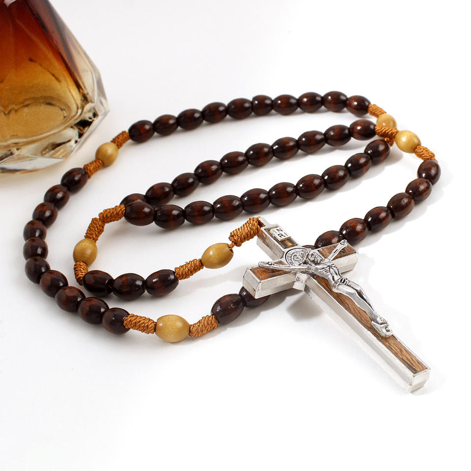 Chapelet catholique fait main pour unisexe, perles en bois lisses avec crucifix détaillé pour la prière, première communion, baptême, confirmation