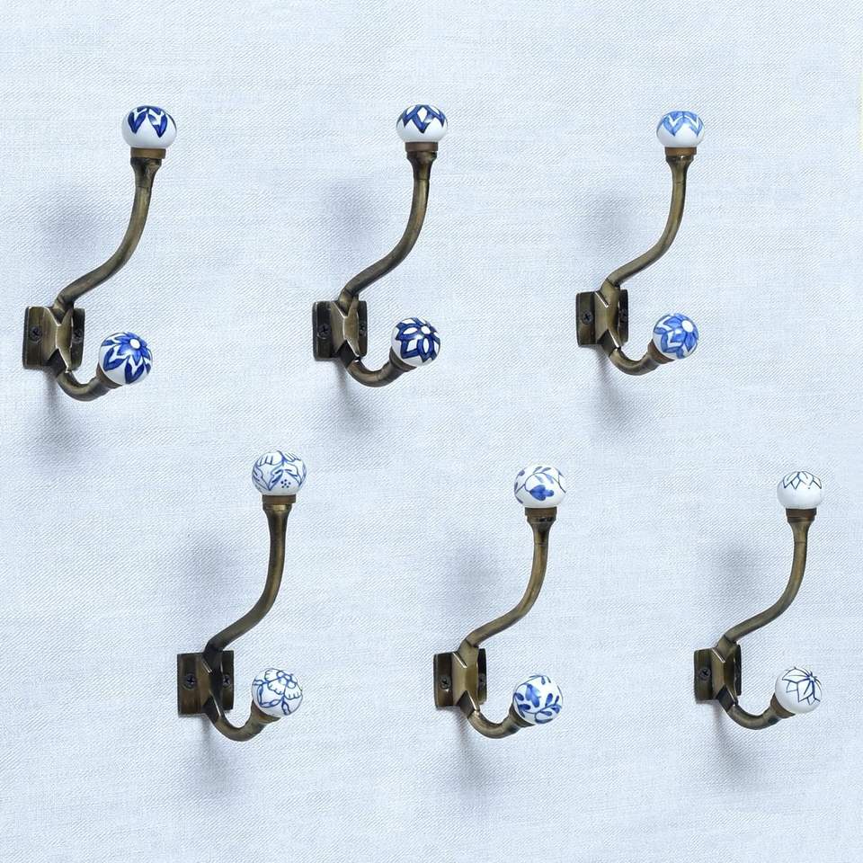 Crochet mural robuste en fer et céramique florale, 6 pièces
