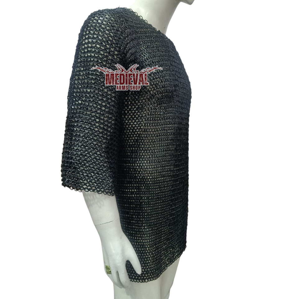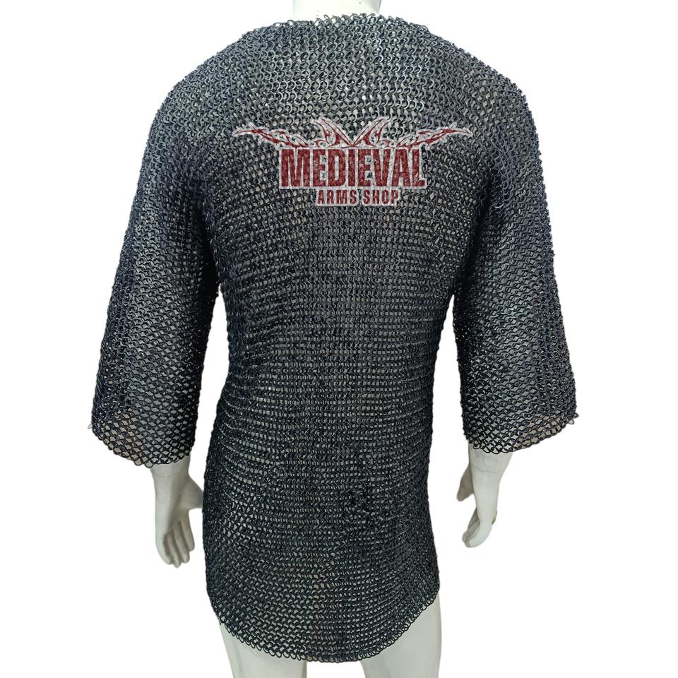 Haubert en acier doux fait main, riveté à plat avec anneaux de fixation, finition noire, pour chevalier adulte, reconstitution historique