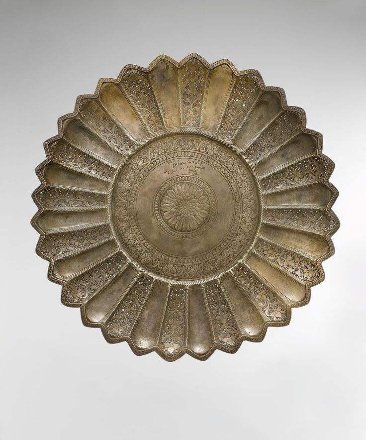 Assiettes de présentation jetables de luxe modernes en acier inoxydable nickelé de 13 pouces, faites à la main, écologiques, pour mariages et réceptions
