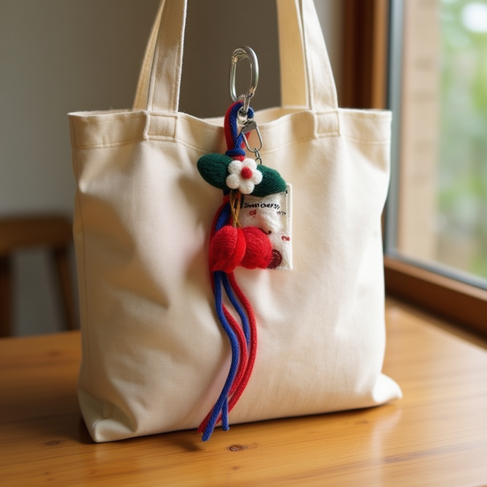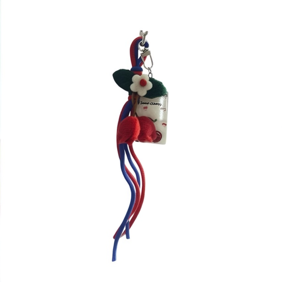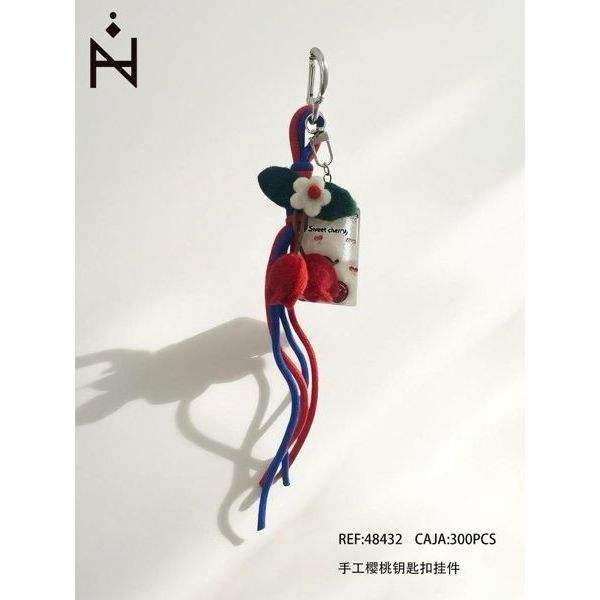 Porte-clés pendentif cerise fait main en peluche tressée avec fleur et pompon pour sac ou porte-clés