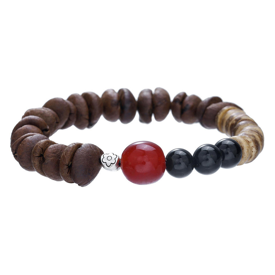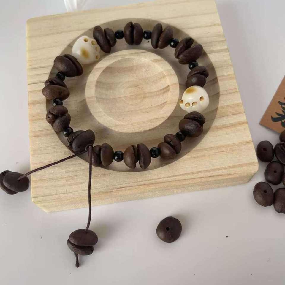 Handmade Chinese Style Elastic Bracelet Sandalwood Coconut Wood Slice Real Coffee Bean Beads Fashion Beaded Bracelet for Women