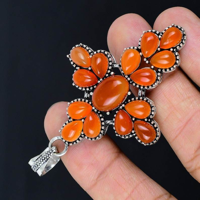 Cadeau de Noël fait main-Pendentif croix en cornaline rouge avec bijoux religieux chrétiens multi-pierres Matériau en laiton à la mode