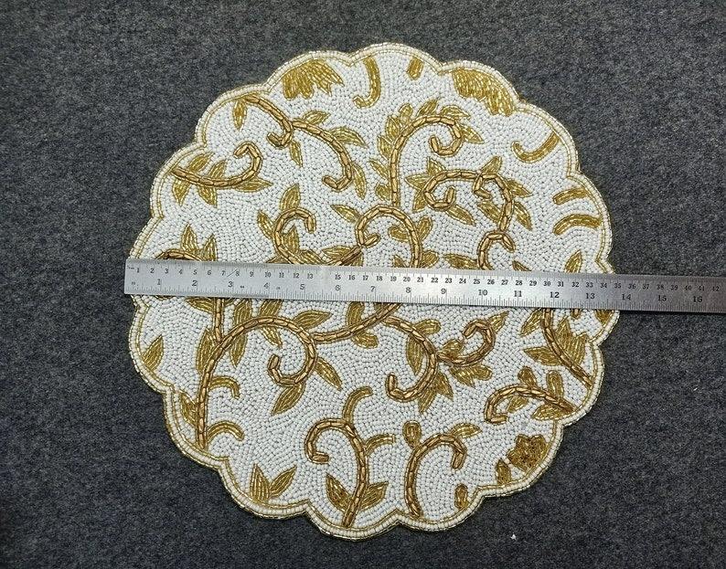 Napperon de table en satin de Noël fait main, brodé, luxueux, écologique, avec perles, pour la décoration de table à manger, pour la maison, les mariages