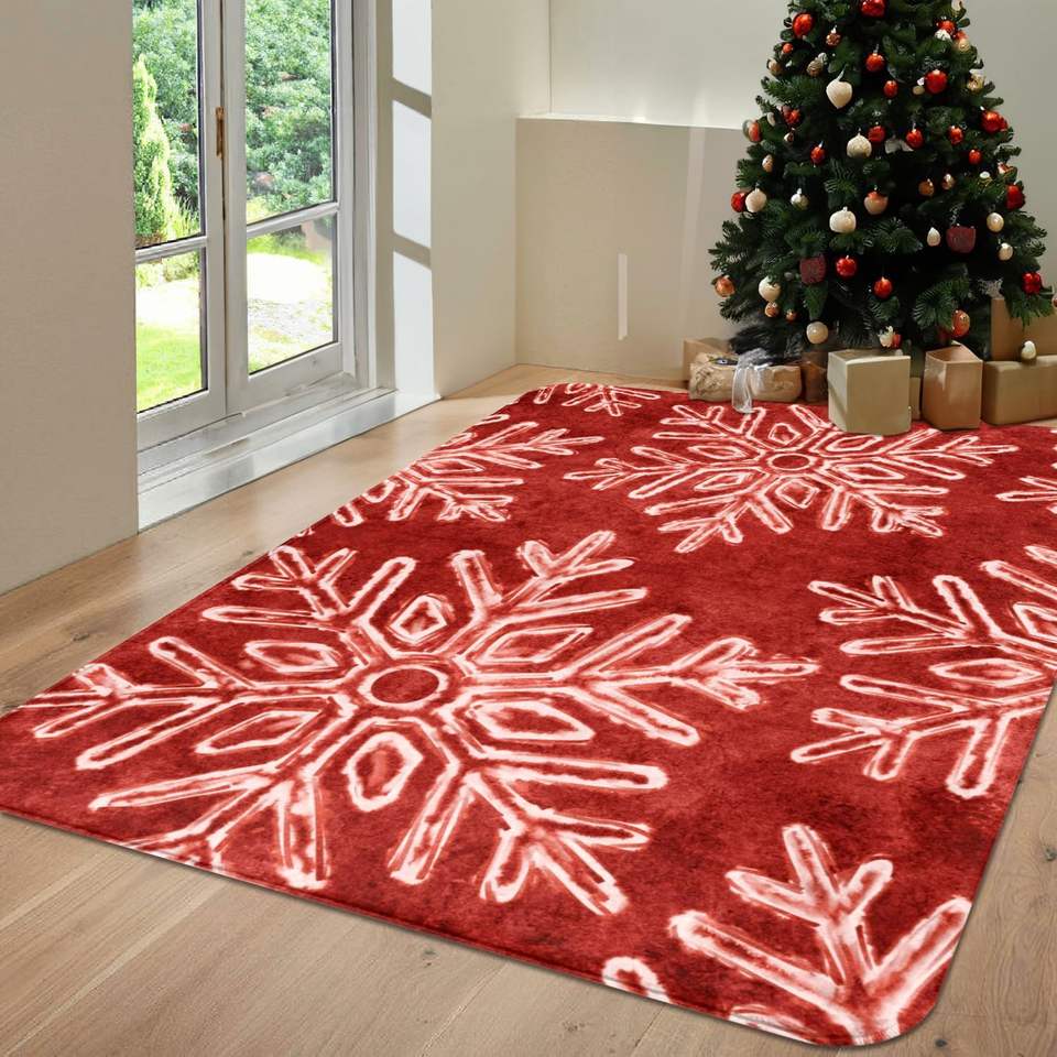 Tapis rouge flocon de neige de noël fait à la main tapis en peluche lavable antidérapant pour entrée salon décor à la maison Rectangle Stock