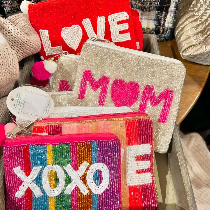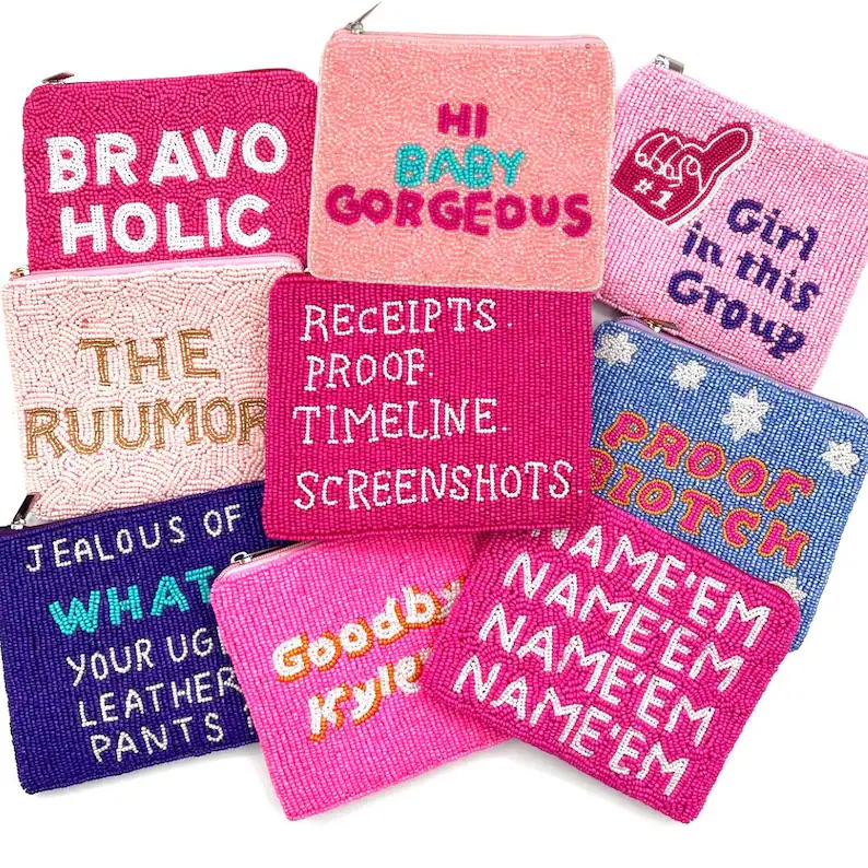 Pochette porte-monnaie perlée à motif dessin animé classique faite à la main, imprimée en typographie, broderie personnalisée, perles de verre, cadeaux pour usage quotidien