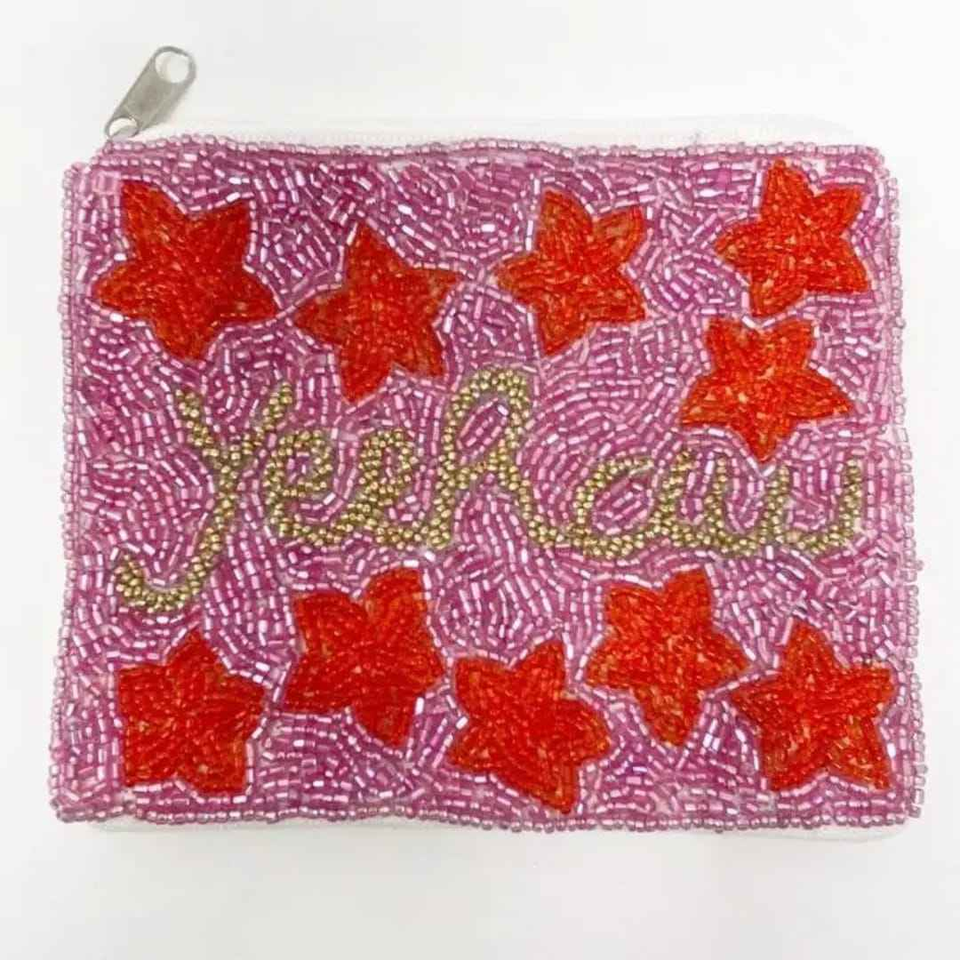 Petite pochette porte-monnaie brodée de perles, motif dessin animé classique, imprimée en typographie, fermeture éclair, colorée, faite à la main