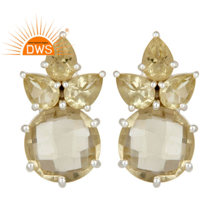 Boucles d'oreilles clous en argent massif 925, collection classique artisanale, fournisseur de bijoux, sertissage à griffes, pierres précieuses topaze citron