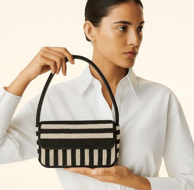 Handmade Classic Cotton Tote Bag Sling Beading Pearl Chain Kids' Beaded Purse Frame Open Closure Flower Decoration Party
