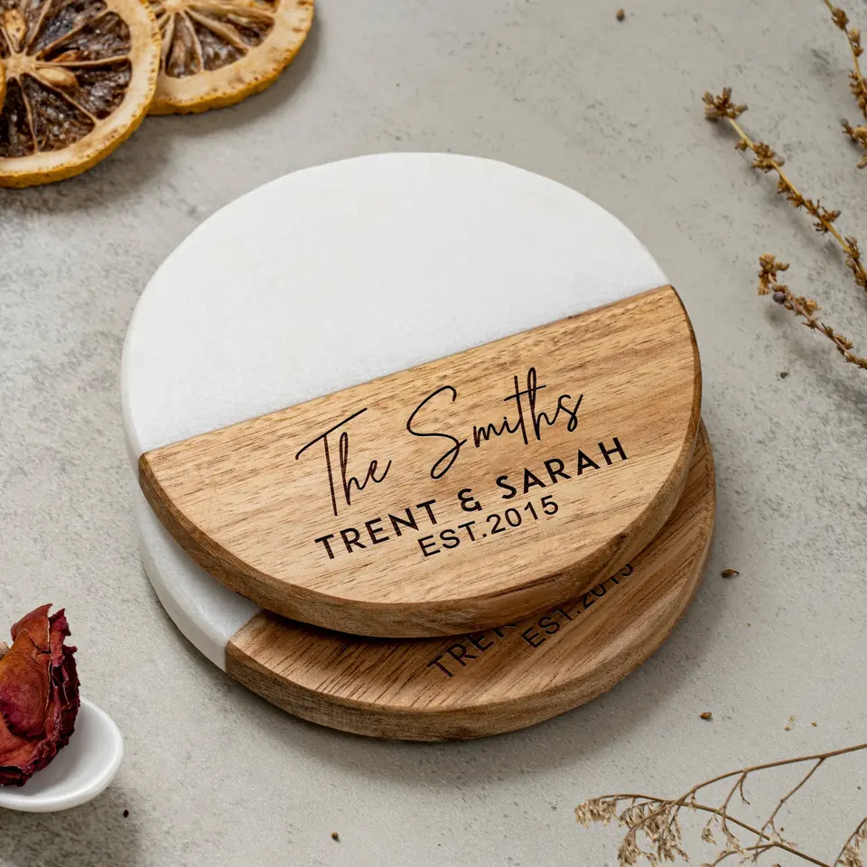 Sous-verres classiques en bois faits à la main avec incrustation de pierre carré marbre et bois pour café thé vin mariage décor à la maison cadeau