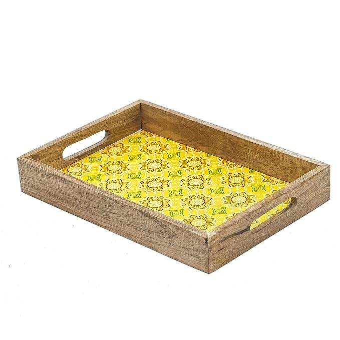 Plateau de service rectangulaire en bois classique fait à la main, motif floral, décoration de maison haut de gamme, vaisselle de restaurant pour un usage domestique