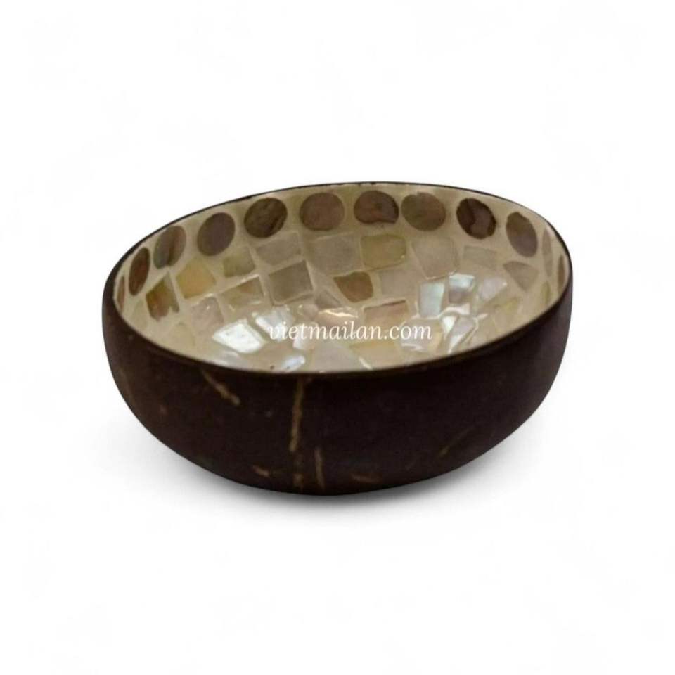 Bol en coque de noix de coco fait à la main avec incrustation de nacre pour servir les aliments, table à manger et décoration naturelle de la maison en provenance du Vietnam