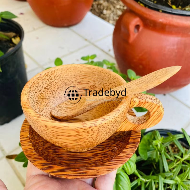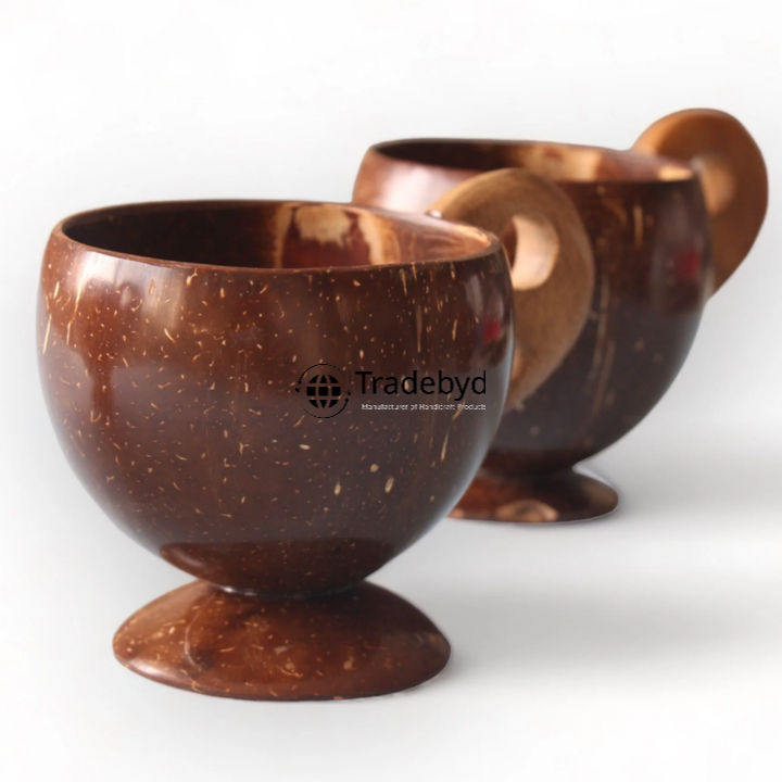 Tradebyd Ensemble de gobelets en coquille de noix de coco faits à la main pour boissons écologiques Tropical Vibes pour voyage et décoration