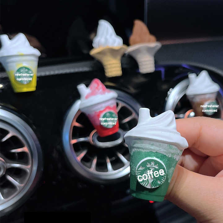 Handmade Coffee Vent Clip Air Freshener Ice Cream Interior Decoration Frappuccino Car Diffuser Refillable Car Air Freshener