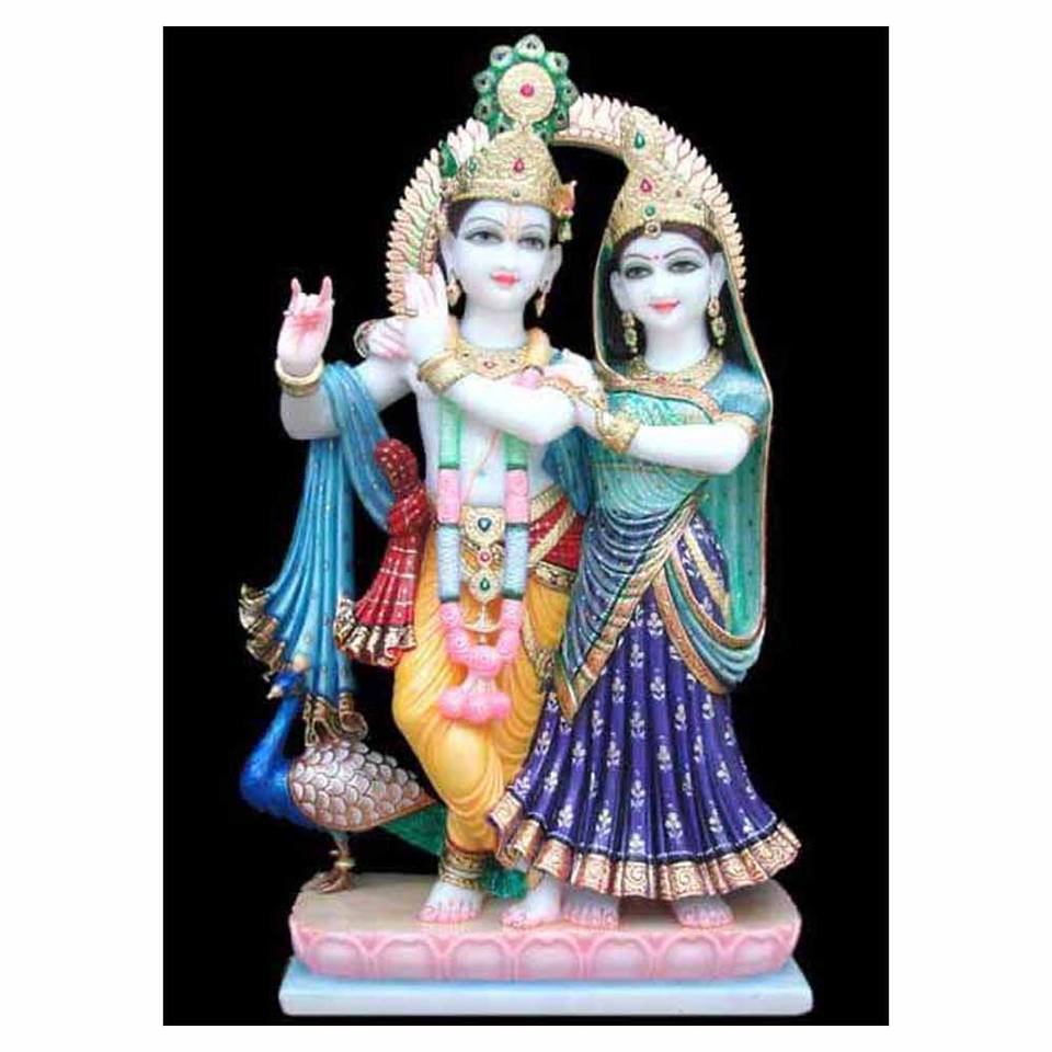 Product Name:Handmade Colored Marble Radha Krishna Sculpture