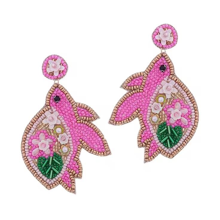 Boucles d'oreilles artisanales brodées de perles colorées CRYSTAL CRAFT, grande taille pour femmes, couleur personnalisable, pour fêtes, cadeaux, style indien