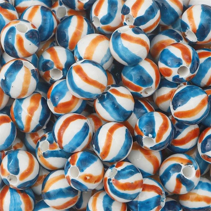 Perles en céramique colorées faites à la main pour bijoux à bricoler soi-même à pois motif rayé perles artisanales perles rondes pour la fabrication de bracelets et de colliers